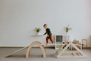 Laipiojimo rinkiniai iš Pikler trikampių, arkų, kubų ir žaidimų aikštelės.